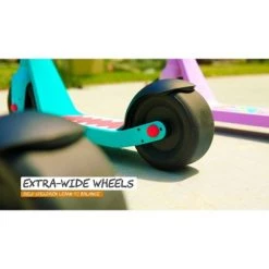 - INFLATABLE TIRES: This kick scooter’s 16″ inflatable and anti-slip rubber wheels provide long-term use and a smooth ride.