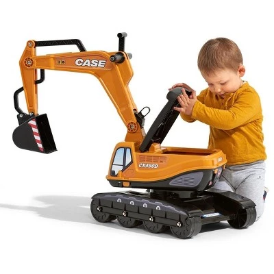 This is Case CX490D Ride On Excavator with Opening Seat by Falk. Features include 360 degree rotative backhoe with a fully operational articulated loading shovel, rolls on 8 strong wheels, and articulating excavator arm! Recommended for ages 3+, Maximum weight capacity: 66lbs (30kg). Measures approximately 27.56″ L x 14.54″ W x 29.13″ H.