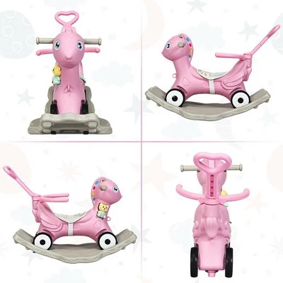 Costway Baby Rocking Horse 4 in 1 Kids Ride On Toy Push Car w/ Music