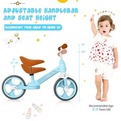 Coming with footrests and 120° limit steering, our no-pedal balance training bike witnesses your lovely children from pushing, gliding to riding this beginner toddler bike safely and independently. What’s more, the adjustable handlebar and seat meet different height needs, making it suitable for kids aged from2 to 5 years. Additionally, the anti-slip and inflation-free EVA wheels with built-in bearing allow children to ride smoothly and safely on multiple grounds. Plus, kids will enjoy comfortable riding thanks to the soft saddle-shaped seat and non-slip handlebar.