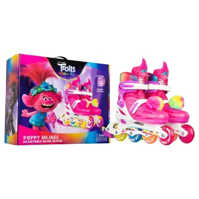 - TROLLS WORLD TOUR – Choose an inline skate featuring your favorite Trolls character, either Poppy or Barb, from the Trolls World Tour movie. Each character’s skates feature a large Trolls head on the tongue with their signature crazy hair, color coordinated boots and wheels, and bright removable Pom-Poms!