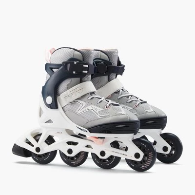 The Fit 3, Inline Fitness Skates Rollerblades, has been designed for kids between 6 to 12 years old. These rollerblades will provide your kids with a great staking experience. Practical, comfy, and well designed, these rollerblades grow as your youth ages! Our team of skating fans at Decathlon has developed this pair of skates that adjusts to 4 sizes. These skates are great for foot sizes 11.5C to 6. These inline skates are very easy to put on thanks to their simple, effective fastenings: a micrometric buckle on the top of the boot for more precision and a rip-tab strap on the instep to ensure the heel fits tightly into the shoe. The 70 mm 80A wheels and ABEC 3 bearings offer a good compromise between glide and handling. Our skates are outfitted with a classic rubber brake that you can fit on either the right or the left foot. Unlike PVC, rubber grips well on hard ground and stops kids from slipping when they push off, as well as helping them brake effectively.
