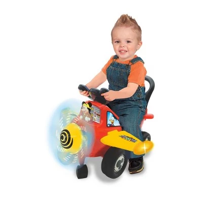 Take off with Mickey and his friends on the Mickey Airplane Ride on. Hours of imaginary fun will be had as your child imagines flying down the runway with Mickey. Watch the soft propeller rotate with colorful flashing lights. The Mickey Plane dashboard has fun interactive buttons that activate lights, sounds and so many fun activities. With the realistic revving engine sound and many more fun sounds, the Mickey Airplane ride on will become your child’s favorite ride. Safe and durable construction for hours of play.
