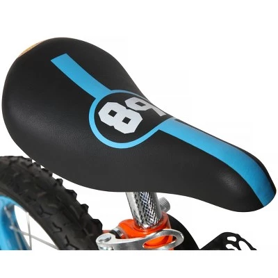 Lead the pack with this racing-inspired Hot Wheels 12” Bike. With the bold orange and blue paint finish, custom Hot Wheels graphics on the handlebar shield and frame, and a revvin’ rev grip featuring realistic racing sounds, he’ll feel like he’s circling the track! Coaster brakes make stopping easy and smooth and the removable training wheels add an extra level of comfort until he’s ready for a more independent ride. Bring the excitement of the racetrack home with this Hot wheels 12” Bike.