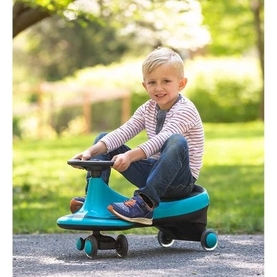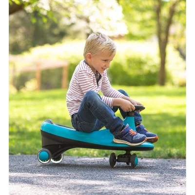 The One2Go Twist ‘n Go Cart Ride-On with Steering Wheel is locomotion fueled by the body. This ingenious cross between a sleek little go-cart and a low-riding foot-to-floor cart means kids can roll over smooth surfaces in every direction. No gears, batteries, or even pedals, this wiggly ride uses the push pull of centrifugal force to move 360°: sit on the sturdy, wide base, place both hands on the wheel, lean to the right or left and the ride will follow! Adult assembly and supervision required; weight limit 110 lbs.