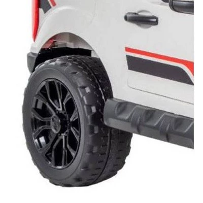 This white Ford Ranger Tremor for kids with red and black details will give your rider every feeling of being behind the wheel of a great Ford truck! Cool-looking and ready for the road ahead, this battery-powered ride-in for children looks just like the real deal. Complete with Ford emblem on the seat headrests, working doors, and engine sounds, this battery-powered truck has everything it needs for your child to have a great adventure. The LED headlights illuminate the way ahead, and the roaring engine sounds make this an action-packed ride.