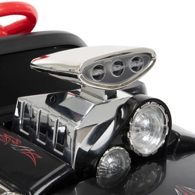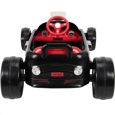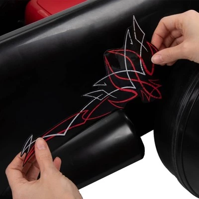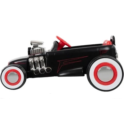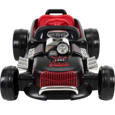- Hot Rod Style: This ride on car for kids looks just like a real hot rod; red and chrome wheels and black paint with pinstriping make this the coolest car in the neighborhood