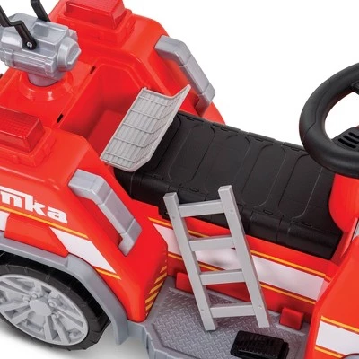 The easy-to-ride 6-volt ride-on toy for kids travels up to 1.5 m.p.h. and includes a battery and a convenient battery charger. This firetruck doesn’t have a power button because it’s always ready for adventures – simply hop on and press down the accelerator to go! The steering wheel is easy to use and keeps your rider comfortable on all their adventures. Your child will be eager for every ride when they experience the fun on this Tonka Firetruck Quad for kids!