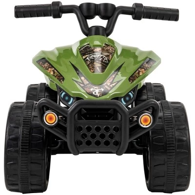 The 6V True Timber Mini ATV ride-on from Huffy has a rugged ATV design featuring True Timber camo. The fun-to-ride ATV starts with just a push of the button. Ideal for ages 1.5 to years, riders will travel up to 2 MPH. The padded seat and roomy footrest keep riders comfortable throughout each smooth ride. The grips are easy to hold for young hands. The easy access charging port makes it a snap to keep the battery charged and the fun going with the charger, included. Power-up some ATV ride-on fun with Huffy!