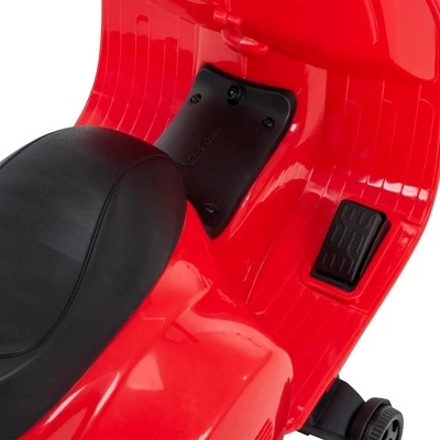 The sleek 6V Vespa scooter is built for giggles and fun. Ideal for ages 1.5 to 3 years, riders push the foot pedal throttle to travel up to 2 MPH. That’s a perfect speed for adults to walk, so everyone shares the joy of the ride.
