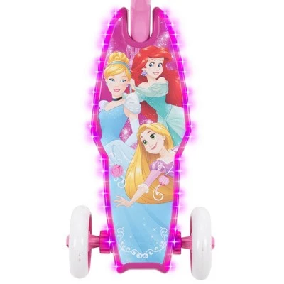 This Disney Princess 3-wheel Scooter from Huffy makes riding through a sidewalk feel like an enchanting tale. The scooter’s handlebar plaque and deck are decorated with so many favorite Disney princesses: Ariel, Tiana, Jasmine, Rapunzel, Belle, and Cinderella.