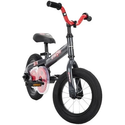 Ideal for kids ages 3 and older, the Huffy Grow 2 Go bicycle provides three stages of riding as your child grows! The fun bike starts as a balance bike. Next, it easily converts to a gear driven bike with training wheels. Finally, if training wheels arenβt needed, simply remove them and ride the traditional 12β bike!