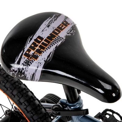 This Huffy 16-inch Pro Thunder bike is begging for awesome adventures with family and friends! Fun colors and cool racing graphics, the Pro Thunder has what you need for miles of memories. The durable steel frame bike in Charcoal comes with rugged tires on orange rims. The 16-inch Pro Thunder includes an alloy quick release and padded seat to adjust the seat height for the right fit. A fun ride with a winning style!