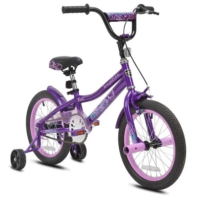 The Sensation from Kent is a great looking and well equipped little girls bicycle. A custom steel frame is outfitted with reliable foot activated rear coaster brakes, as well as front a front hand brake. Add in front pegs, training wheels, a beautiful paint job with spectacular graphics and you have an amazing package that any little girl will go crazy for.