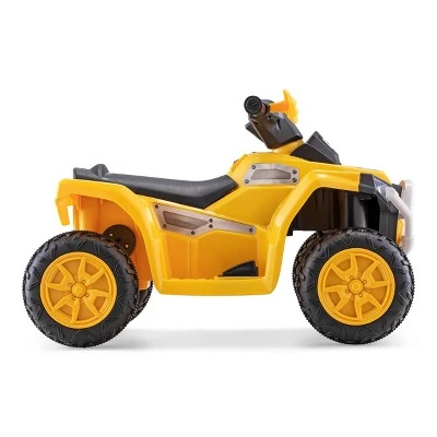 Calling little builders everywhere! Catch a ride to outdoor fun with the CAT Tough Toddler Quad ride-on toy by Kid Trax. The CAT Tough Toddler Quad features authentic yellow and black CAT styling, working headlights, and an included toy helmet for tons of construction fun in the driveway, backyard, or sidewalk. With real foot pedal acceleration and a top speed of 1.5 MPH, this ride-on toy provides the perfect blend of fun and safety. Plus, it comes with a rechargeable 6-volt battery and charger so the fun never has to stop for long. Build a full day of imaginative play with the CAT Tough Toddler Quad by Kid Trax.
