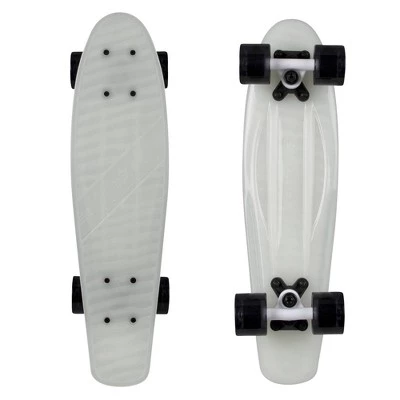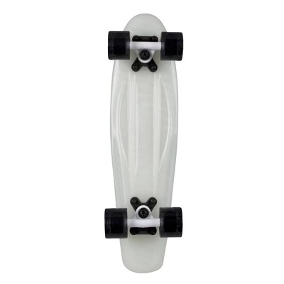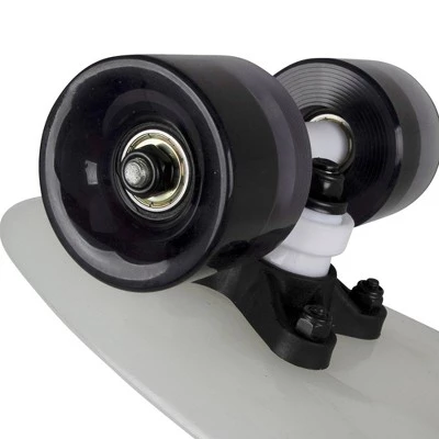 - Trucks: 3.25″ colored composite retro cruiser trucks with 90a bushings