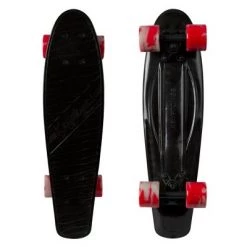 The 23″ mini fat cruiser by Kryptonics is ideal for riding around town. The heavy duty 5″ trucks and 4mm riser pads give a cushioned ride while the single kicktail, poured polyurethane wheels with ABEC 3 bearings are ideal for simple tricks. Established in 1965, Kryptonics™ is one of the most authentic brands in skateboarding and still remains an innovating force in the industry today. Kryptonics™ changed the game in 1976 by developing the first urethane skateboard wheel, and the innovation hasn’t stopped since. Kryptonics™ now dominates the market with a lineup of complete skateboards – including cruisers, longboards, standard 31 in skatepark models and retro poly plastic “torpedo” boards. Every detailed construction of deck, truck, bearing and wheel is considered to reach all age groups and riding styles. Kryptonics™ completes come fully assembled with grip-tape and skate hardware, make sure to adjust trucks based on skating preference and ability and remove the protective wheel cover which may be installed. Always remember to wear skateboard protective gear (skate helmet, knee pads, elbow pads, and/or wrist guards) that supports the rider’s skill level.