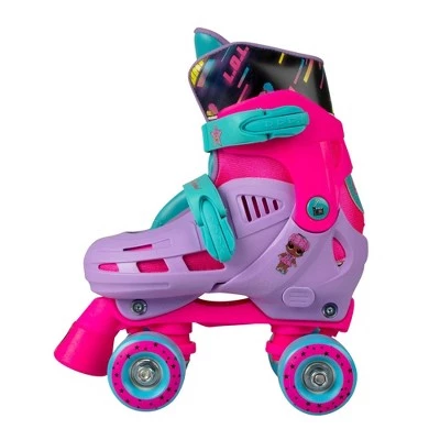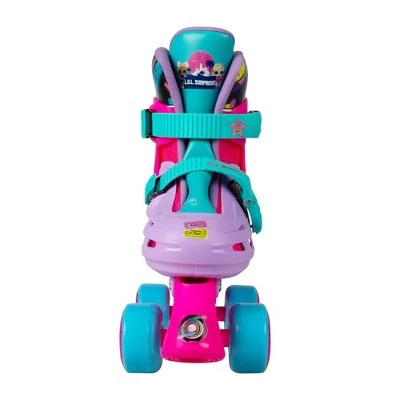 Innovative new LOL Surprise design is the most stable skate for beginners. Low center of gravity and a special wheel cover bar make this quad skate the easiest beginner skate available. Extra strong plastic buckles are easy for kids to use. The thick foam padded liner is extra comfortable and provides ankle support. Recommended for ages 4 plus with a shoe size of 10-13.
