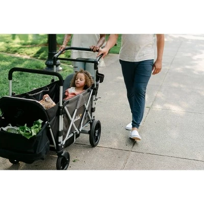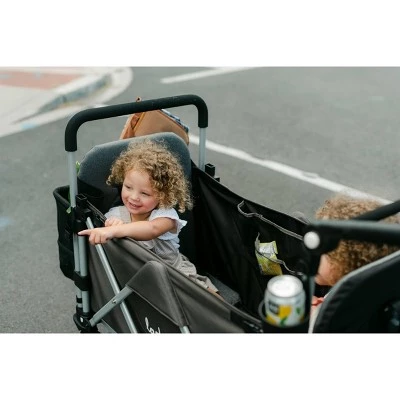 The adventure awaits! Designed for growing kids with places to go, the Larktale caravan™ stroller wagon has interior seating for two passengers. The easy maneuverability puts even more activities in play such as sporting events, outdoor festivals, camping, and the beach. And when your little one is tuckered out, only the caravan™ offers unique patent-pending reclining seats. You can also flip one seat forward into a flat base position to haul even more essentials on your outing or let your little ones stretch their legs