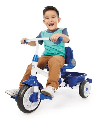 The blue Little Tikes Perfect Fit 4-in-1 Trike offers design and functionality with the one-of-a-kind exclusive Perfect Fit seat technology to adjust and fit any size child for the most comfortable ride.