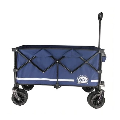Traveling requires a convenient, efficient way to store all your essentials. When you’re on the go, load up like a pro with the Nature’s Journey Collapsible Camping Wagon by Maxwell Outdoors.Almost twice as large as your traditional camping wagons, this utility cart holds up to 180 pounds, yet boasts a portable design. Built with 600D Oxford fabric, PVC material, and a metal frame, this cart is durable, waterproof, and won’t tear from sharp objects. Specially designed, extra low-noise wheels make transportation across any even surface a breeze. Adjusting the handle angle back and forth makes pushing and pulling this cart even more effortless. Made with basic parts, this cart is easy to disassemble for deep cleaning and around-the-clock maintenance. When not in use, the wagon can be effortlessly folded in seconds and is super easy to store without sacrificing storage capacity.This wagon cart measures 14 inches long, 11.5 inches high, and 24 inches long while folded. The Nature’s Journey Collapsible Camping Wagon is the perfect choice for trips, sporting events, camping, shopping, and much more!