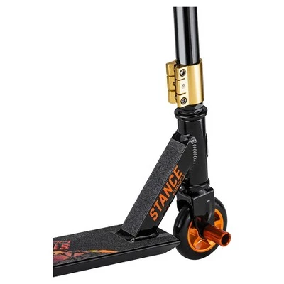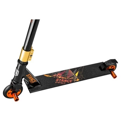 At home at the park or in the street, the Mongoose Stance Pro Freestyle Scooter is the perfect way to show off your sweet skills. This pro-style park-performance scooter will look rad gliding around town, but where it really excels is owning the skate park and stomping through the urban jungle. It’s easy to handle with a lightweight alloy deck, which features an extended standing area for ultimate performance. Full-coverage MaxGrip™ on the deck and alloy brake provide the perfect non-slip surface for riding and more, while the 100 mm high impact alloy wheels and reliable ABEC-9 bearings supply smooth, durable riding wherever you go. Throwdown whatever and however you like with the strong one-piece welded steel Y-bar handlebar; it’s outfitted with tough anodized clamp bike-style grips and moves fluidly for the perfect bar spin. Add in front and rear alloy pegs and the only thing holding you back is a lack of creativity. Riders 8+ with a weight limit of 220 lbs. will enjoy precise, crisp steering with the triple anodized clamp collar. Stand out from the pack and show everyone what you’re made of on the Mongoose Stance Pro Freestyle Scooter. This isn’t your average scooter; this sturdy set of wheels is for hardcore riders only. There’s nothing you can’t do on a Mongoose.