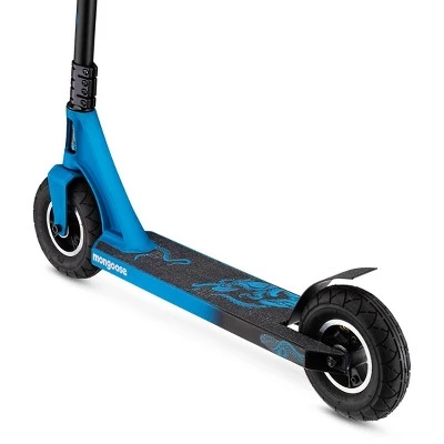 Take that ride off-road with the Tread Pro Freestyle Dirt Scooter by Mongoose. Built for riding on dirt and gravel, the Tread Pro features a 23 x 5-inch alloy deck and chromoly steel handlebar for maximum durability. The quadruple anodized clamp collar and threadless headset offer precise, crisp steering, while the steel foot brake delivers controlled stopping power. Plus, large 200 mm air filled tires alloy core wheels and ABEC-9 bearings provide a smooth, stable ride. Are you ready for an off-road adventure? Get out there and have a blast with the Tread Pro Freestyle Dirt Scooter by Mongoose.