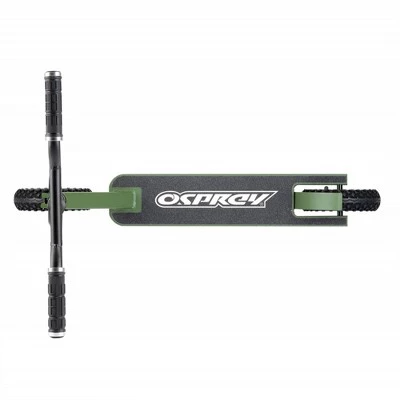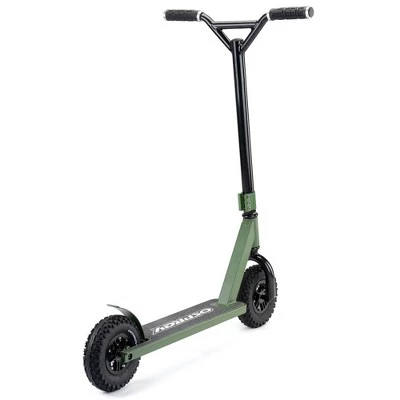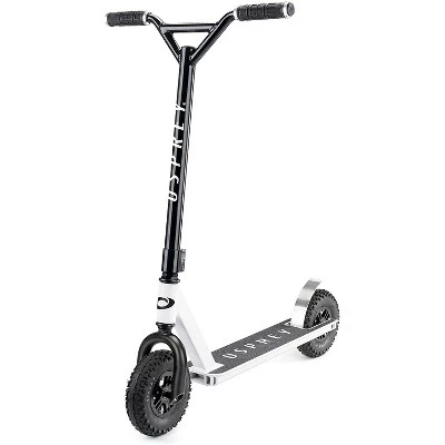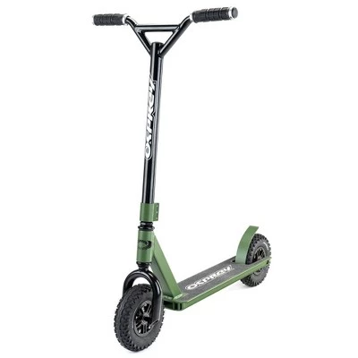 Race, jump, and explore your favorite off-road trails, grass, or dirt areas with the All-Terrain Dirt Trail Scooter from Osprey. This off-road scooter is crafted with 7.87 x 1.97-inch chunky rubber tires designed to grip uneven or rough surfaces, giving you more traction as you move. With 3 piece aluminum hubs, you can land jumps with comfort and ease. The chrome handlebars feature large rubber grips that are locked securely in place to keep your hands firmly on the handles as you maneuver over rocks and other rough ground. With a durable aluminum design, this off-road scooter can handle flying rocks, gravel, and dirt from the track. When you need to stop, the stainless steel rear brake is made with high-quality materials to give you extra stopping power on whatever terrain you choose. This off-road scooter is suitable for adults and children ages 12 and up. Easily maneuver through off-road trails and grassy areas, and experience a whole new kind of scooter ride with the All-Terrain Dirt Trail Scooter from Osprey.