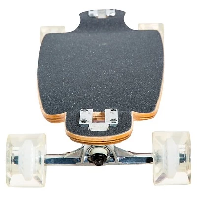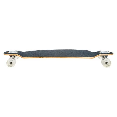 The Punisher Skateboards Oni 40″ Long Board features a full Canadian maple drop-through concave deck and ABEC-9 high-speed bearings. Formaldehyde-free wood and 76mm x 53mm PU wheels make it a durable and edgy toy that children ages 10 and up will enjoy. This double kick with drop down deck long board skateboard features a unique graphic and wheels in contrasting colors.