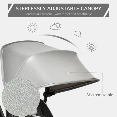 Want to take kids on adventures near and far? This tricycle stroller from Qaba has a wide field of vision to allow babies to gaze out at the world on their outings. For toddlers, the tricycle includes EVA tires for a smooth ride, brakes, and a shock-absorbing base for safety. The fold-up design of the double trike allows for easy storage. Keep kids protected from the elements with the enclosed canopy, and ensure their comfort with an adjustable five-point safety harness.
