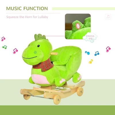 Make the adventure of learning to walk even more exciting and fun with this Qaba 2-in-1 ride-on plush Dinosaur kids rocking chair that will help your child can learn to scoot, push, and walk with the help of an amazing stuffed friend. For the earlier stages of infancy, your child can ride the Dinosaur with assistance. As they grow they can crawl and scoot with the children’s rocking chair, slowly learning to stand and walk. Handholds and wheels will help your child build the right muscles and learn to balance while using the toy rocking chair to steady themselves. As an added feature, this dragon chair comes with 1 nursery song that can be accessed by squeezing the dinosaur’s ear. Made from durable materials, this dino is the perfect toy for a growing infant, while the plush fabric of the rocker creates a comforting stuffed friend.