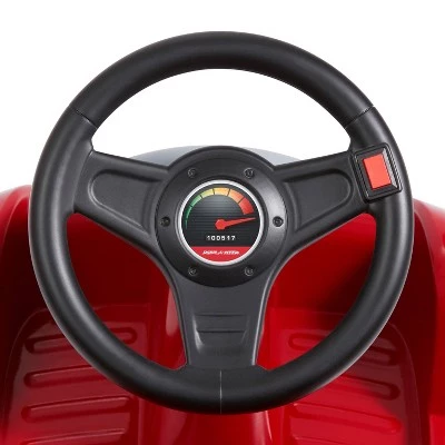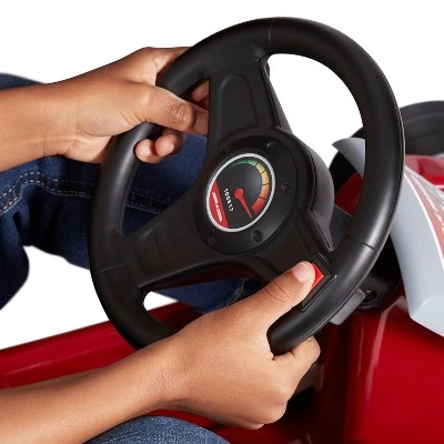 Radio Flyer’s Grow Kart™ is the first battery powered go-kart that grows with your child! You don’t need any tools to use the unique telescoping mechanism in the frame that extends up to 6” as your child gets taller. Front steering helps beginner drivers feel comfortable behind the wheel. The Grow Kart ™ features two forward speed settings (1.5 & 3 MPH), single speed reverse and automatic braking. Kids will stay safe with the parent-controlled speed switch that allows parents to select which speed the car drives in. The 8.25” rear wheels feature a grip tread for additional traction. 6V battery and charger included. For ages 2-5 years.