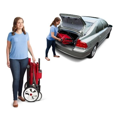 - Front caster wheels for nimble steering and large, 12” easy push rear wheels