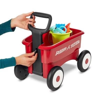- 2 wagons in 1 – the handle can be locked for a walker wagon, or released for a pull wagon