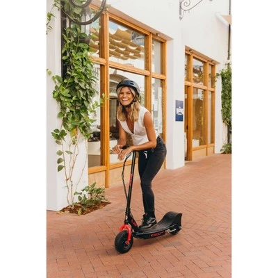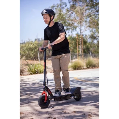 For teen and adult riders up to 220 lbs(100 kg), this affordable, comfortable, stable scooter with a wide anti-slip deck is the perfect way to zip around the neighborhood or across campus (local laws apply). With the quiet hub driven motor, the E300 HD electric scooter boasts speeds up to15mph (24 km/h) and a range of up to 10 miles (16 km) on a single charge. The 9” (229 mm), pneumatic front tire helps soften out rough surfaces. With a variable-speed, twist-grip throttle control, a hand-operated rear brake, and durable steel frame -your ride just got smoother with the E300HD electric scooter.(Bring your light to ride it after dark.)