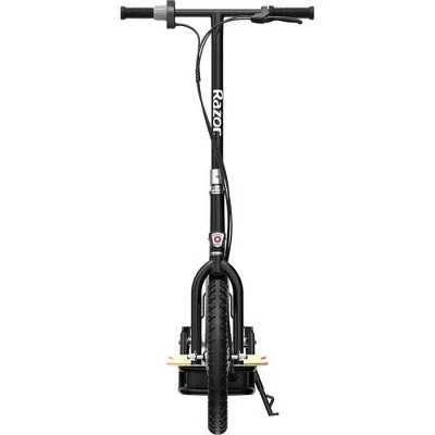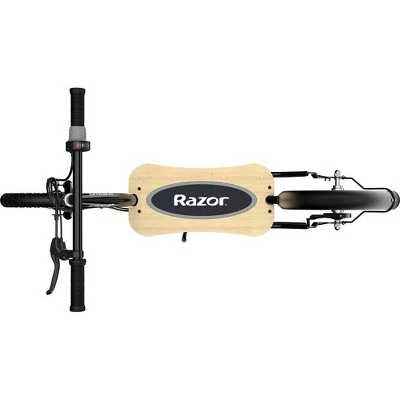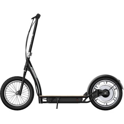 As more people go car-free, going green has never been so stylish with the Razor EcoSmart series electric scooters. Now with this new member to the family, the EcoSmart SUP Electric Scooter offers you a choice to stand up and enjoy the same comfortable ride in style! Its 16″ (406 mm) pneumatic tires, and a wide bamboo deck for plenty of foot room, provide a smooth, comfortable ride for neighborhood or cross-campus trips (local laws will apply). This electric scooter, with a 36V lead-acid battery system and plug-in charger, requires no gasoline, making it an economical and eco-friendly alternative to make local trips. With its quiet, high torque, 350-watt hub-driven motor, the Razor EcoSmart SUP Electric Scooter can reach speeds up to 15.5 mph (25 km/h), boasts an up to 15.5mile (25 km) range and up to 60 minutes of continuous use. Whether you’re a college student, an eco-conscious adult, or an energetic senior – getting to class, running errands or zipping around the neighborhood on the Razor EcoSmart SUP Electric Scooter will quickly become your favorite part of the day. Bring your light to ride it after dark.