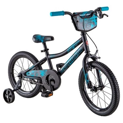 Teach your little racer to ride on a BMX bike designed just for kids with the Schwinn Flywheel. The Flywheel features a SmartStart BMX style steel frame that’s perfect for kids learning to ride. SmartStart frames are designed with narrower, kid-specific proportions for easier pedaling and handling. Plus, the Flywheel can grow with your child. The training wheels provide stability as they learn to ride, while the saddle and slack seat tube angle allow for easy adjustment as your child grows. It also includes both a rear coaster brake for intuitive stopping, and front and rear hand brakes to ease the transition to a bigger, hand-brake-only bike. And like all Schwinn bikes, the Flywheel comes with a limited lifetime warranty for as long as you own the bike. Teach your child to ride on a bike they’ll love with the Schwinn Flywheel.