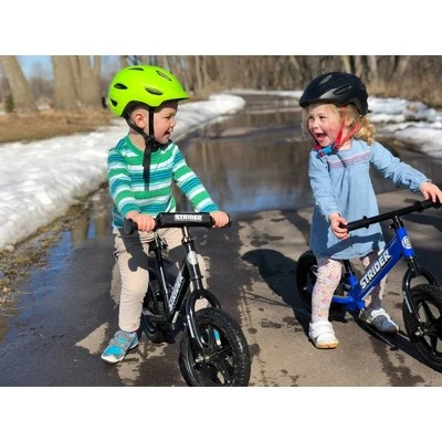 The Strider 12 Classic is our basic model that comes equipped with our no-flat tires, which are ready to take the punishment that only mud puddles and heavy riding can dole out. The lightweight, steel frame was specifically constructed for child-level durability and has the lowest seat height in a balance bike, so even the tiniest of toddlers can ride comfortably. The Strider 12 Classic is a great, unembellished choice that gives every kid the chance to experience the simple joy of a Genuine Strider Bike (at least until naptime).
