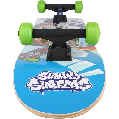The Subway Surfers 31” Skateboard gives you the ultimate skateboard deck with pro trucks and wheels for any aspiring skater! With neon wheels and glossy finish, our kids skateboard makes the perfect gift for teen girls and boys in need of a board that can hold its own at the local skatepark. The complete skateboard package for active outdoor kids, teen games, or parents looking for kids skateboards for beginners, our skateboards give you everything you need to hit the skatepark confidently! The durable skateboard decks ensure your kids skateboard can take a little abuse at the skate ramp, and the sleek traditional design makes them much more versatile than standard cruiser skateboards. Whether you’re looking for a high-quality boys and girls skateboard for beginners or an awesome new board for your experienced skater, this skateboard has you covered!