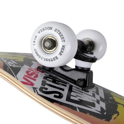 Vision skateboards is one of the most iconic brands in skateboarding, leading the industry in the 70’s, 80’s and 90’s. Every detailed construction of deck, truck, bearing and wheel is considered to reach all age groups and riding styles. Vision completes come fully assembled with grip-tape and skate hardware, make sure to adjust trucks based on skating preference and ability and remove the protective wheel cover which may be installed. Always remember to wear skateboard protective gear (skate helmet, knee pads, elbow pads, and/or wrist guards) that supports the rider’s skill level.